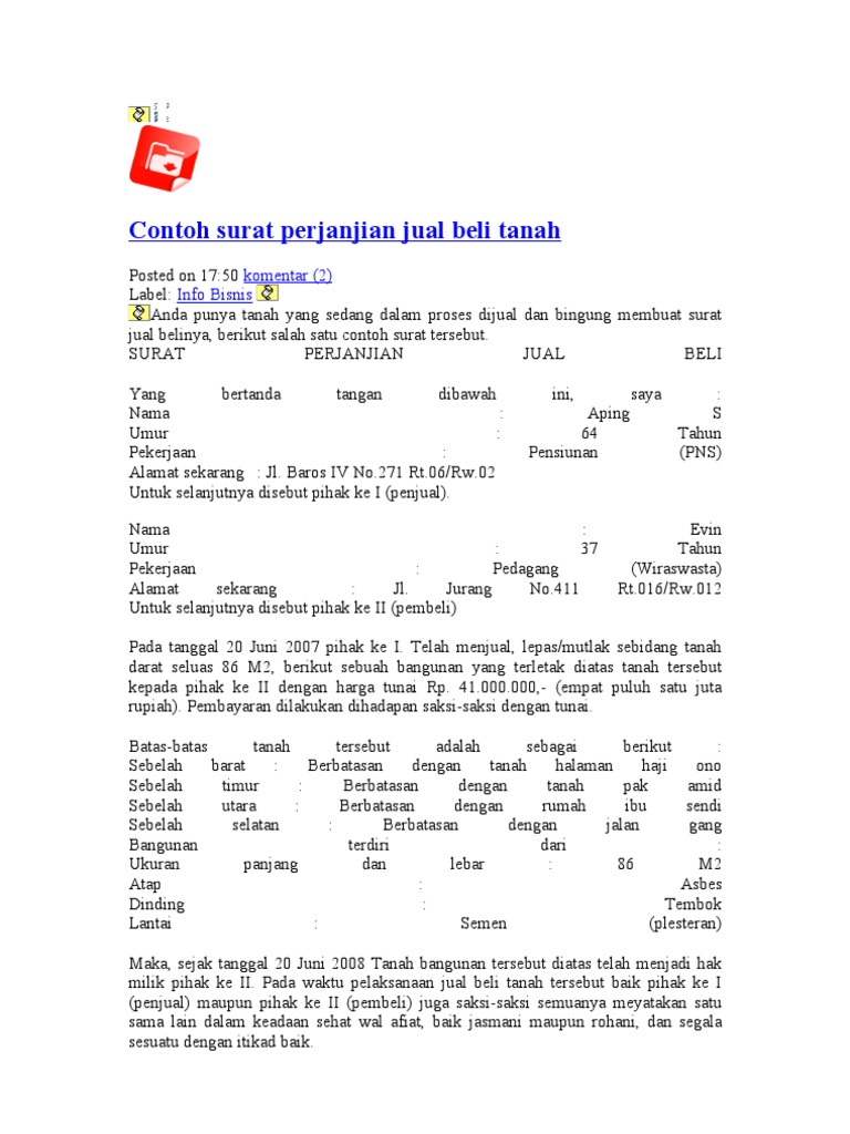 Contoh Surat Perjanjian Jual Beli Tanah from imgv2-2-f.scribdassets.com Judul surat ditulis dibagian atas surat. Yuk, pahami dan praktikkan agar segala transaksi berjalan lancar! #vitron gais kita kena jaga diri dan keluarga ya. Surat jual beli motor termasuk ke dalam surat yang resmi dimana ketika membuat surat ini harus menggunakan bahasa yang formal. Savesave surat perjanjian jual beli motosikal for later. Isi surat bagian surat ini. 3.3 contoh surat jual beli tanah sawah. Selain itu, orang yang membuat surat ini juga harus memastikan bahwa tidak ada kesalahan penulisan identitas diri dan tanggal dilakukan transaksi tersebut.