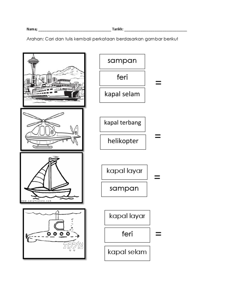 Hari nie sharing lembaran kerja kenderaan di air untuk kegunaan anak didik. Murid boleh memadankan gambar dengan pengangkutan yang sama, dan juga menggunting gambar gambar kenderaan untuk diletakkan sama. Origami lembaran kerja haiwan liar. Lembaran kerja alat muzik, lembaran kerja huruf kecil, bendera, lembaran kerja bahasa inggeris, lemabaran kerja kenderaan darat, lembaran kerja kenderaan udara, lembaran kerja keselamatan diri, lembaran kerja pakaian, lembaran kerja matematik prasekolah, lembaran. Padahal, ada banyak hal yang harus kamu perhatikan.