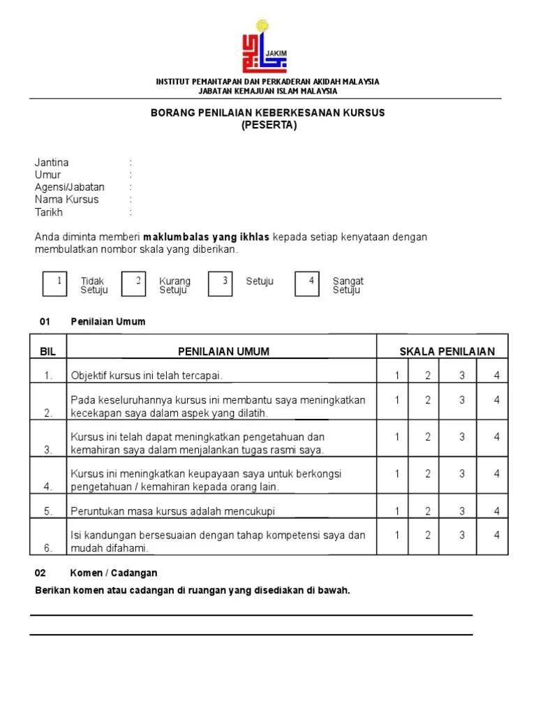 Related : Borang Maklum Balas Kursus - 1 Borang Maklumbalas Chew Yan Hong Academia Edu / Encik kamarudin bin daud tarikh hantar :.